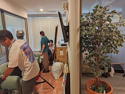 院内には照明機材やカメラ、音響設備が次々と搬入され、総勢約40名ほどのスタッフのみなさんが準備に動き回る姿は圧巻でした。